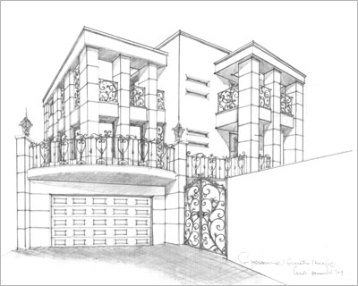 世間一般で言う輸入住宅系のデザインは、建築家と言われるようなアトリエ系の設計事務所では出来ません。かなり特殊な部材や専門的な知識を必要とするからです。いや、学校では教えてくれないからとも言えます。CADで表現しづらいのも一因です。上記のような素敵な手書きでのみ、その良さが表現出来るのです。
