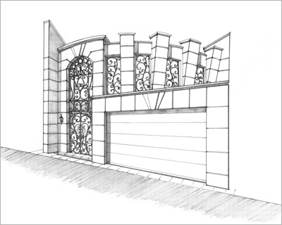 これに、さらなるアクセントとなって全体を引き立てているのが、お洒落なロートアイアンによる、フラワーボックスや、キャノピー、ランプ、門扉などです。