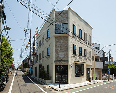 全体的に、ヨーロッパの大理石積みもしくはライムストーン積みを思わせるように、Rの外壁には溝を切ったデザインにし、木造とは思われない瀟洒な、しかし重厚さもある外観を醸し出しました。