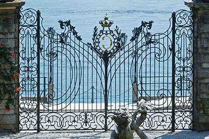 以上は、いずれも世界に冠たるロートアイアンの門扉(ゲート、門)をピックアップしていますので、エンブレム・紋章・ロゴ・イニシャルをデザインに加えていなくとも、そもそも素晴らしい、おしゃれな、格式高い。。。いえ、いかなる形容詞を並べようとも表現し尽くすことが出来ないほどの秀逸なデザインであることは、疑いようがありません。