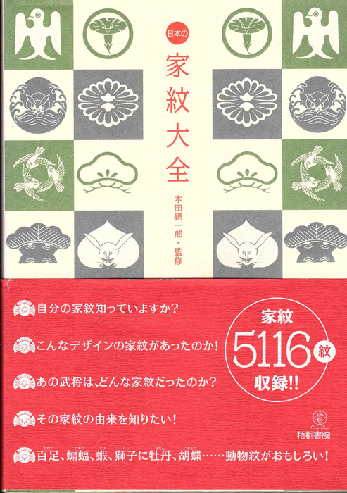 家紋については、書店に上記のような専門書が何冊も並んでいるように、まだまだ滅びゆく文化とまでは言えないようです。