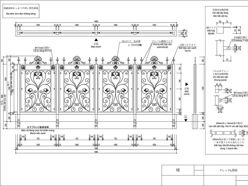 とても華やかな印象と、それでいてエレガントでもあり、上品な気品すら感じさせる、ヨーロッパの中でも特にフランスをイメージさせる空間にとても良く合うデザインだと思います。このフェンスをご利用いただければ、邸宅や店舗、庭園、外構・エクステリアに、ヨーロッパの王宮やサロンのような色気と品格ある最上の高級感を纏わせることでしょう。それこそモチーフであるツタや花が良く合いますし、ヨーロッパさながらに大理石などにも良く合うデザインです。
