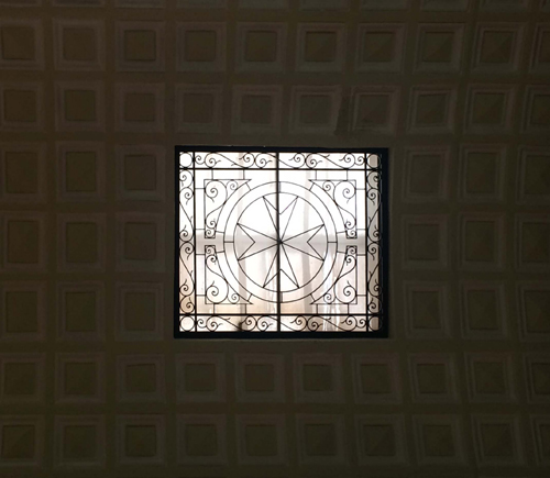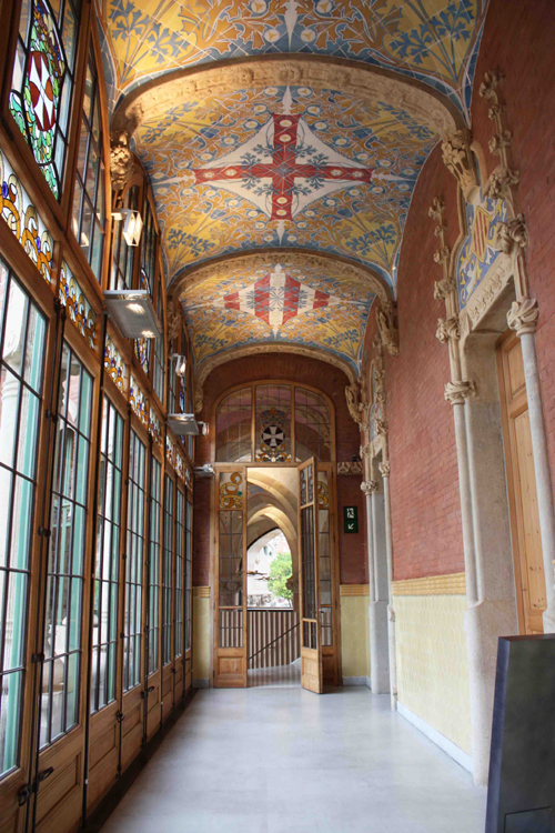 さらに、天井部分の病院のシンボルである十字模様。4連の赤い線で描かれた、カタルーニャのシンボルが施されております。