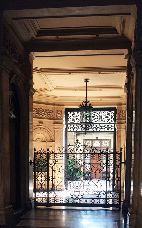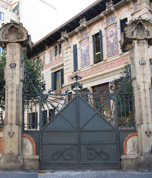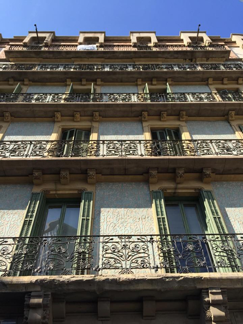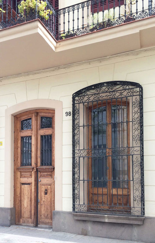 多くの建物の玄関にはロートアイアンが使用され、ガウディが影響された物と同様に、植物の装飾で飾られています。