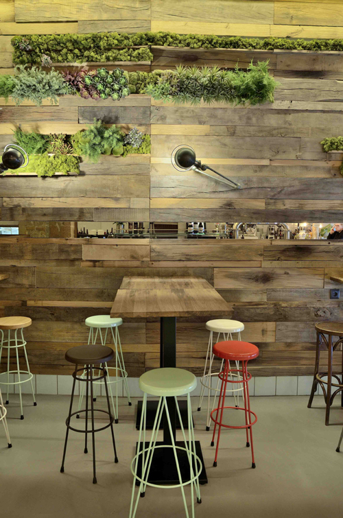 そして壁の上部から天井にかけてモデルニズムの緑色で彩色された草花の模様、そして下部分には白のタイルを基盤とした緑の草の模様が描かれています。