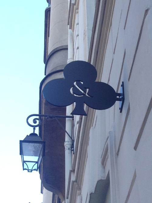 パリのロートアイアンの番外編で、可愛らしいロートアイアンの看板です。