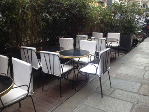 そして最後の写真は、町中で何気無しに目にとまったカフェのテラス席。一見すると、モダンだな〜と思うのですが、椅子のデザインが可愛らしい。シンプルでミニマルなのですが、どこのスペースでも使用できる感じのデザイン。