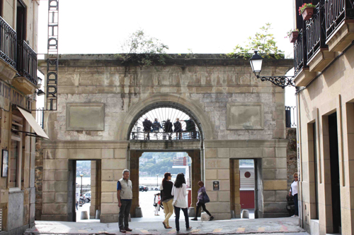 写真は、その旧市街の一場面で、門の下から海岸を眺めることが出来る場所です。門の上部分にはまた別の通りがあり、そこにはベンチにすわって海を眺める方が多くいます。