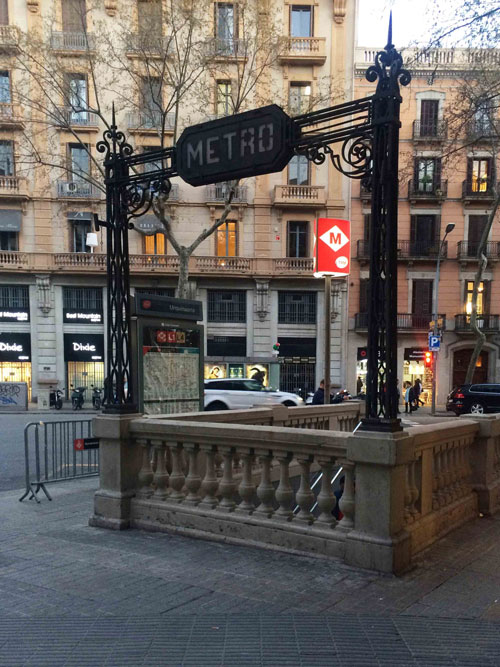 写真はUrquinaona(ウルキナオナ)駅の入口です。