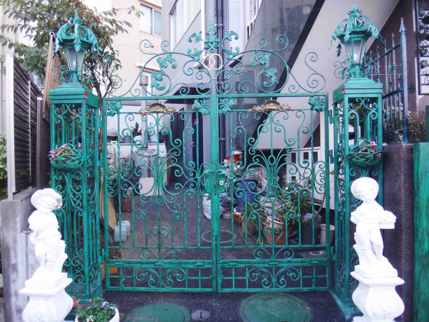 その他にも、敷地が奥に高くなっていることを解消するために、下部にフラップ板のように上下する子扉が仕込まれて一体に見せるデザインになっていたり、トップには家紋モチーフのエンブレムが配されたり、門柱を同じデザインでしつらえることで、より豪華さ、お洒落さ、かっこよさ、豊かさ、気品を増しています。まさに、これぞオーダーメイド、ハンドメイドの神髄といえるでしょう。
