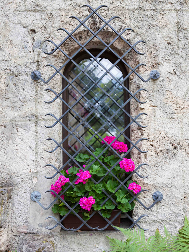 ロートアイアン全般に言えることですが、このように季節の草花、植栽との相性がとてもよく、お互いがより映えます。邸宅を美しく飾り、生活を楽しんでいる、そんな豊かさがにじみ出ていて、とても素敵です。