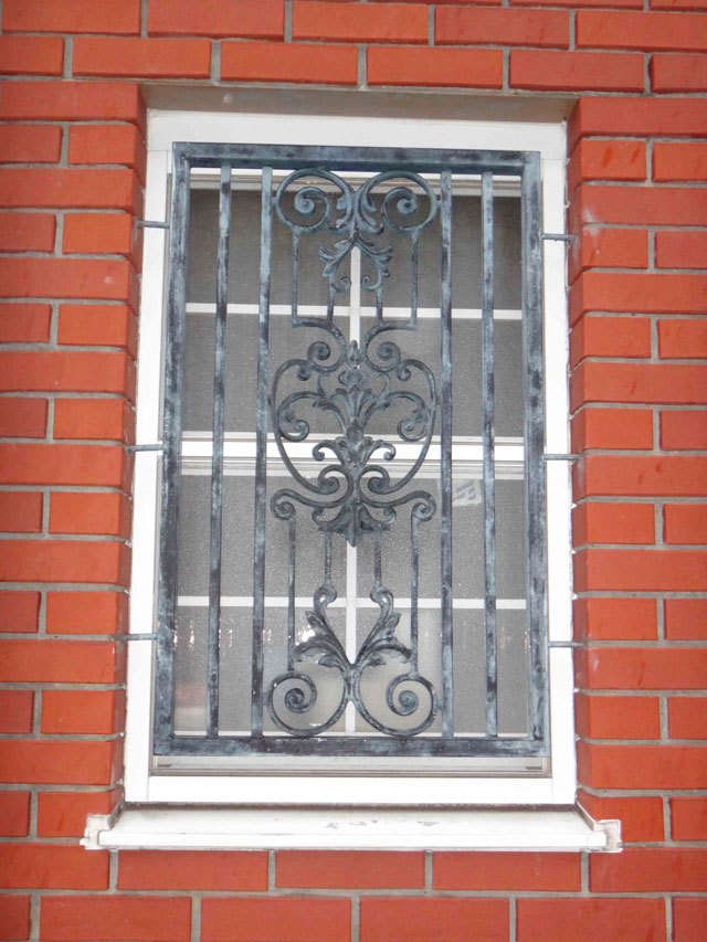 ロートアイアンの面格子・ラティス#010は、シンプルな縦格子をベースにして、中央付近に縦長にロートアイアン伝統の柄を配置することで、クラシカルな伝統と格式、さらには大人の気品というべき佇まいすらも感じさせる、お洒落なデザインに仕上がりました。